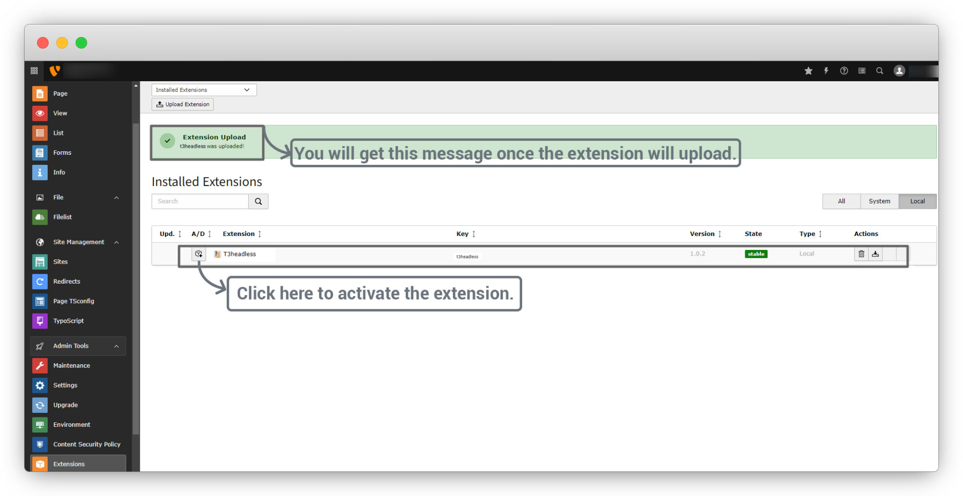 After all the configurations are done, now it’s time to activate the t3headless extension. Please follow the below steps to activate the t3headless extension.