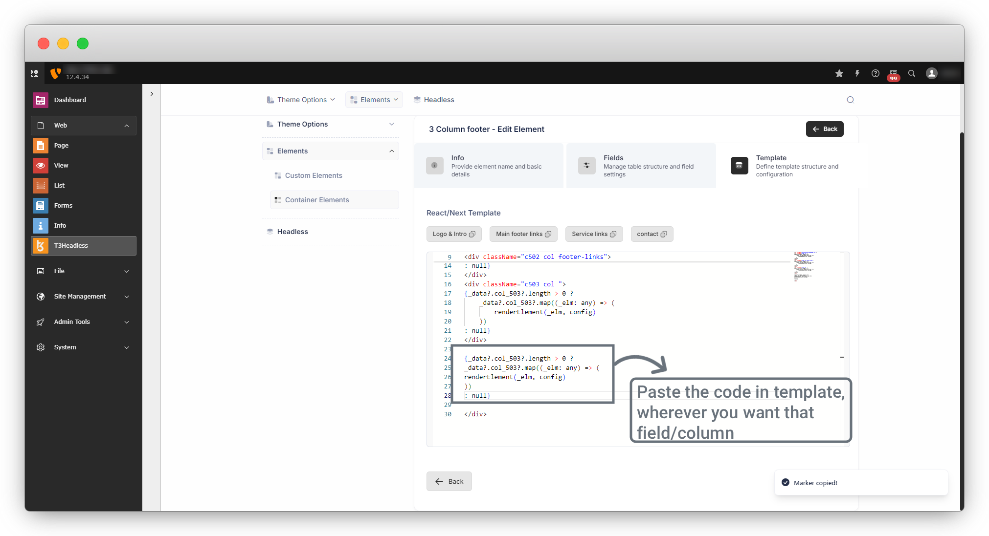 1. Please open the file themebuilder.js from the provided folder. The file is located in the src folder: srcthemebuilder.js and add your license key. Please check “t3headless Activation” to see how to get the license key.