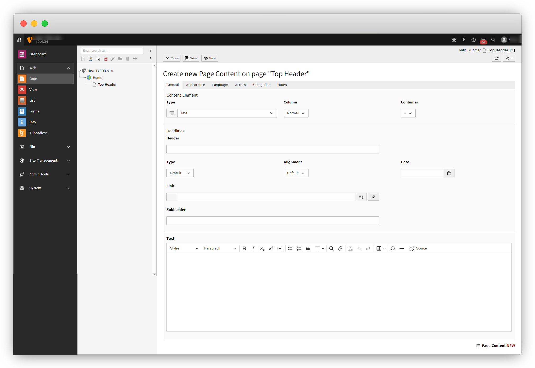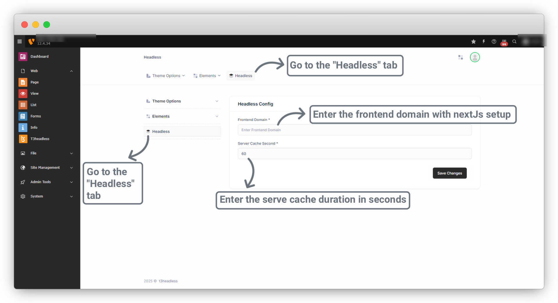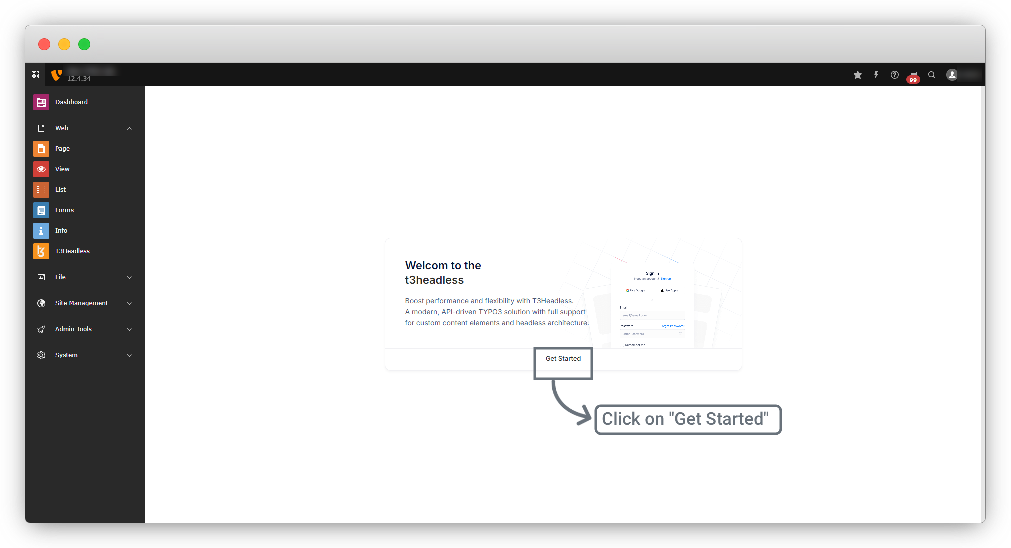 1. Go to Web > t3headless and you will see the screen as in the screenshot below click on “Get Started”.
