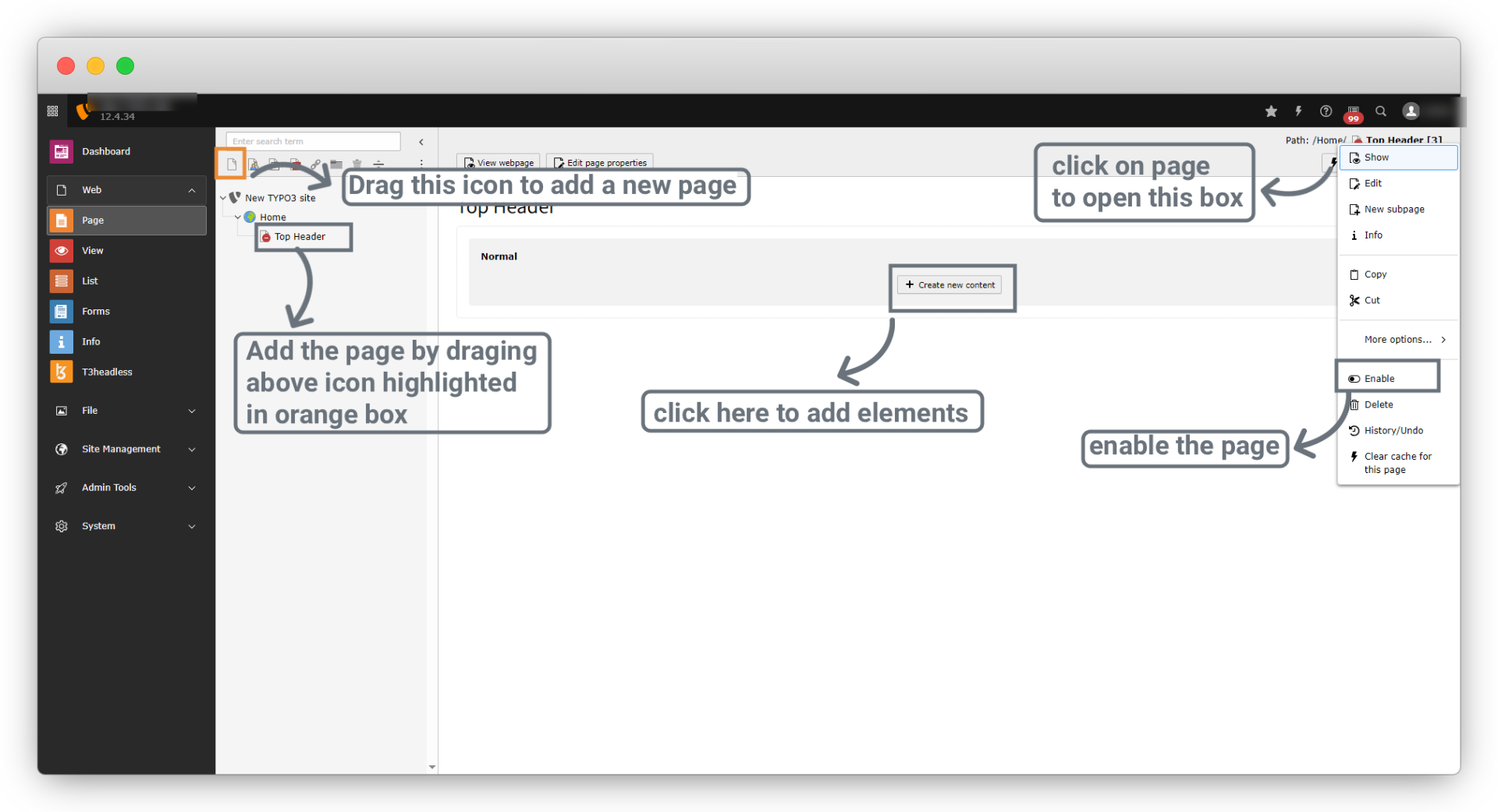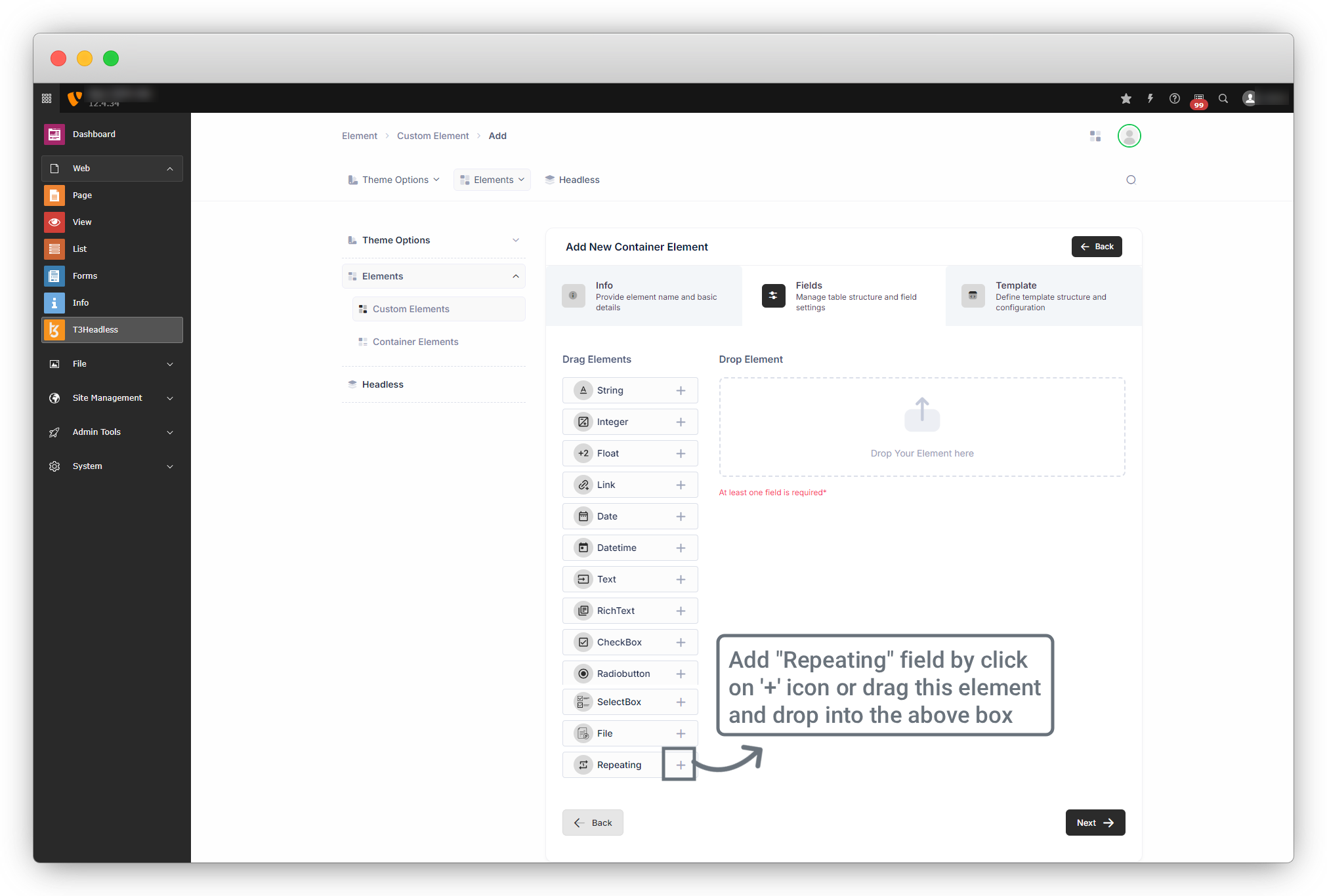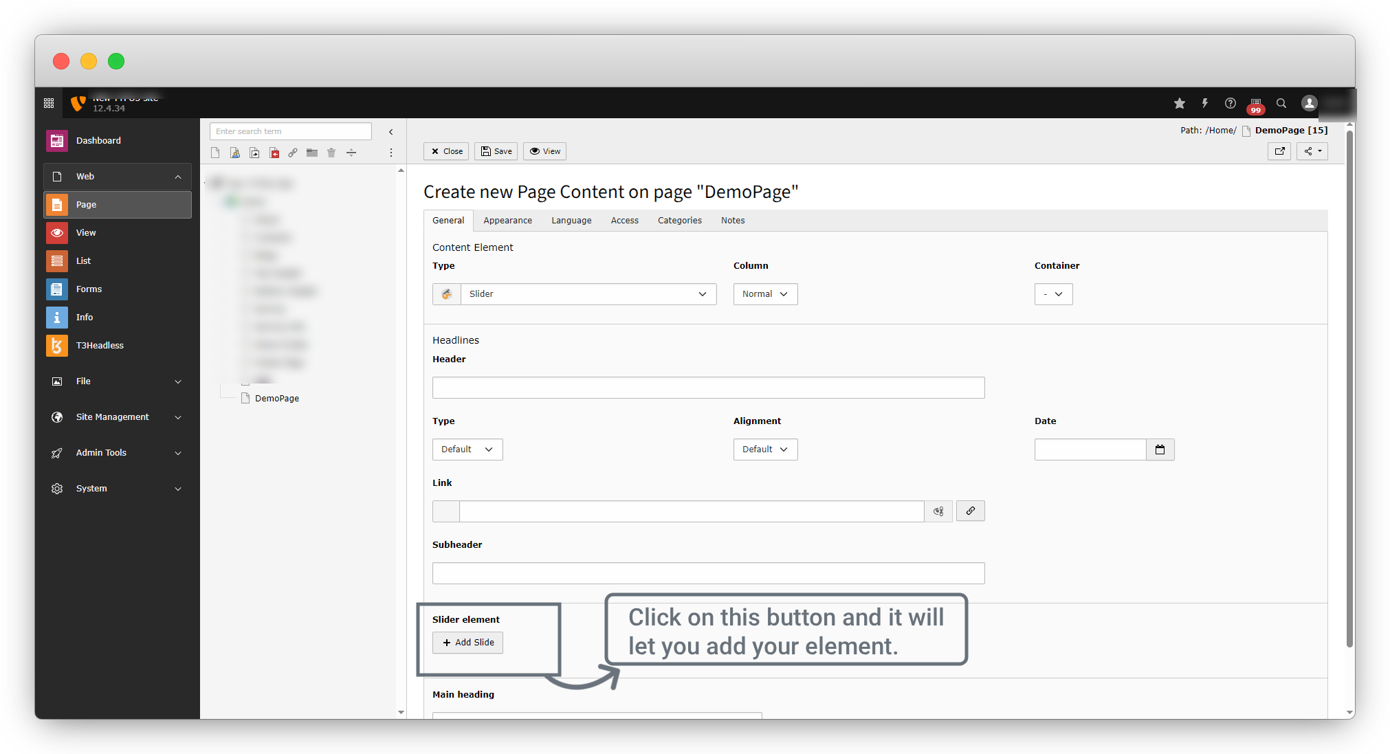1. Go to Web > t3headless and you will see the screen as in the screenshot below click on “Get Started”.