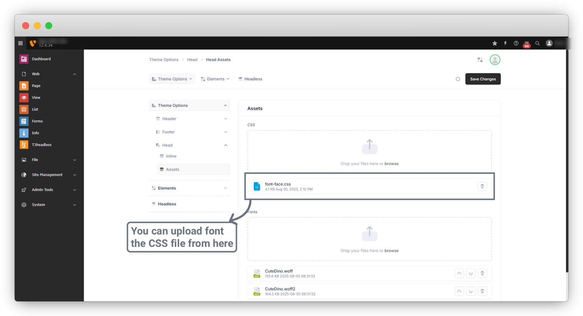3. Like the logo, you can add a favicon, and CSS file and also upload theme fonts from the Logo, Favicon etc.