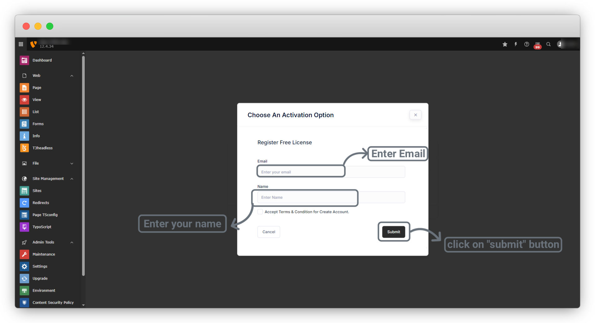 3. Case -2: If you didn’t purchase the product but want to use the t3headless extension, then you can register directly after extension installation and you will get the license key in your mail, then you can add the license key to activate the t3headless. Please follow the below steps to activate the t3headless extension by Free Registration.