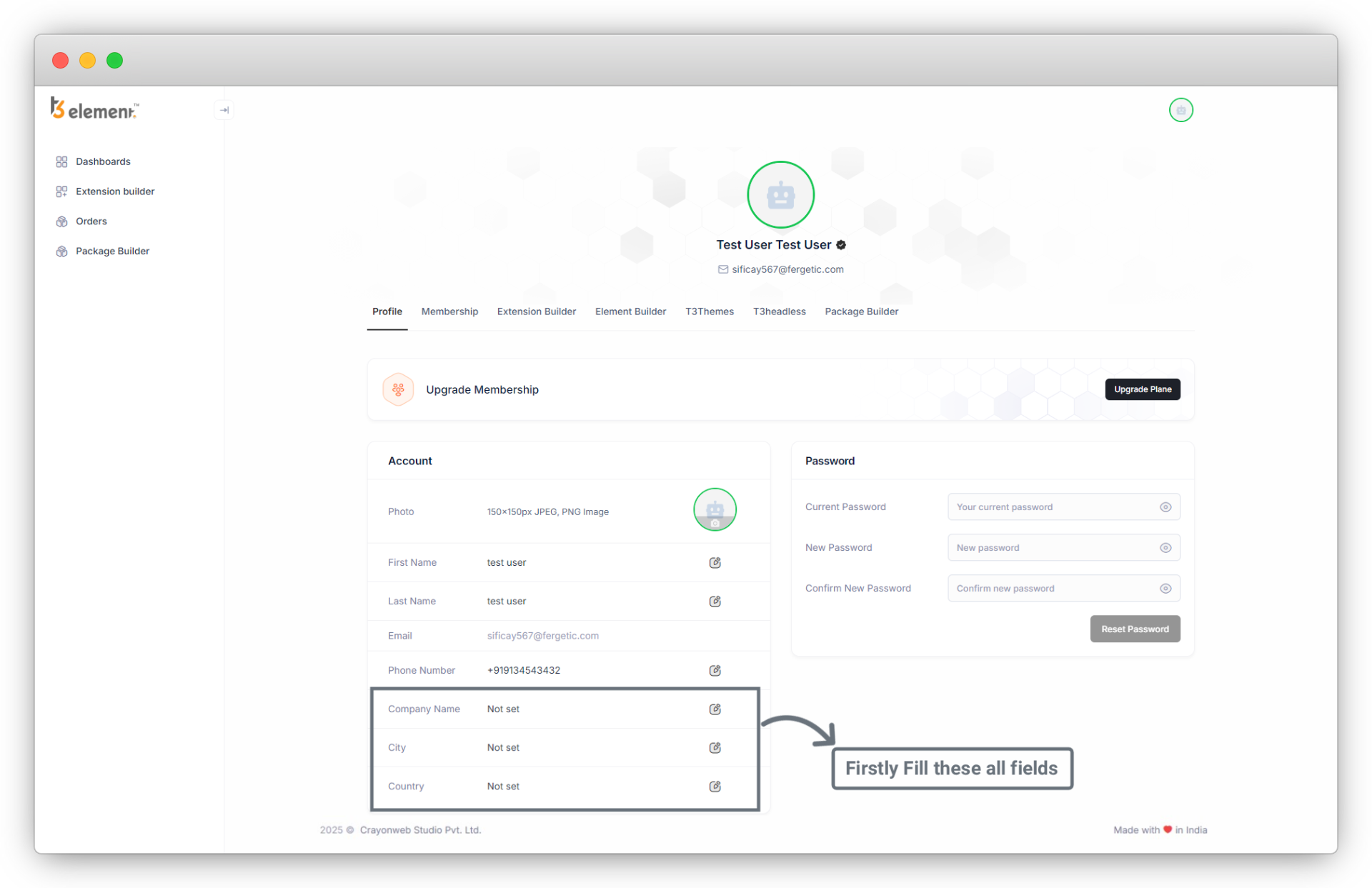 6. After complete your profile you can access all other pages, Here you can change name, company name, city and country also on right side you can change password.