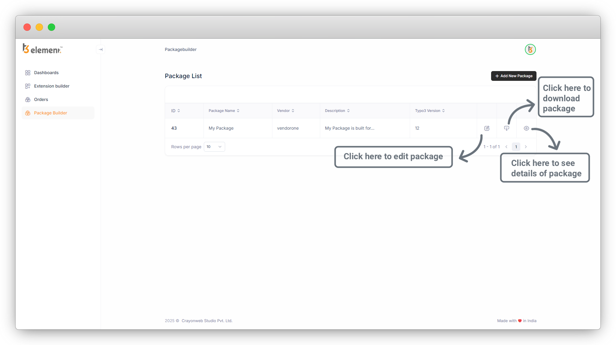 1. After registration, On the left side you can see the sidebar, just below the Dashboard tab, you’ll see the Package Builder tab. Click on it.