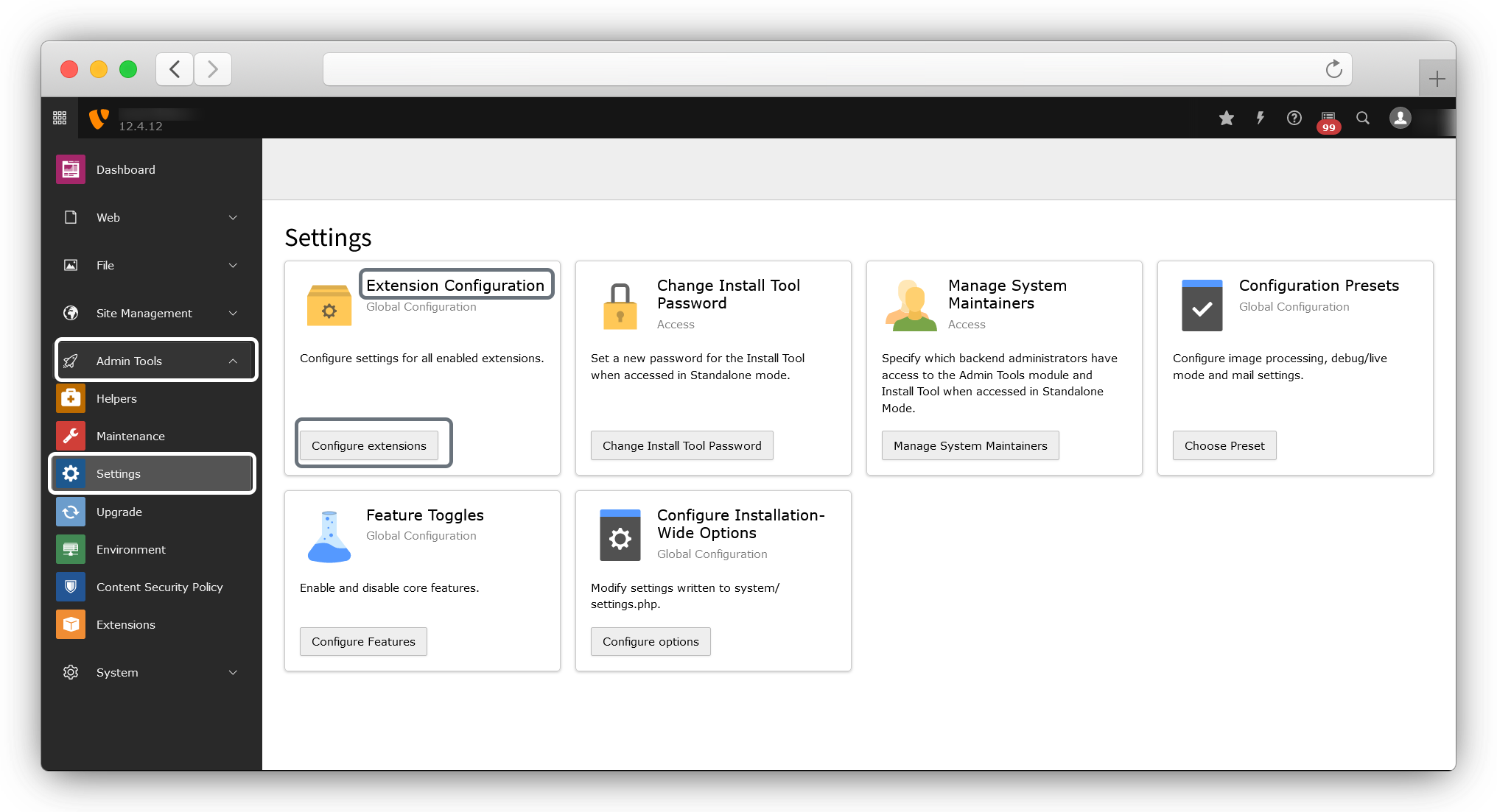 Go to Admin Tools > Settings > Extension Configuration and click on Configure extensions